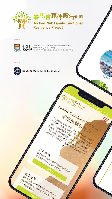 Projekt „Jockey Club Family Walkthrough Project” jest organizowany przez Departament Pracy Socjalnej i Administracji Społecznej Uniwersytetu w Hongkongu i jest dotowany przez Hong Kong Jockey Club Charities Trust. Współpracuje z Integrated Family Service Center w celu zapewnienia Hongkongu z trzyetapowym modelem profilaktyki i profesjonalnym szkoleniem.Rodziny świadczą usługi profilaktyczne i wczesnej interwencji w celu zwiększenia odporności emocjonalnej rodziny i promowania zdrowia psychicznego.