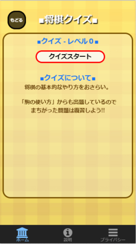 この無料アプリは、そんな方のために駒の並べ方や動かし・進め方の紹介と、確認チェック兼ねたクイズをアプリにしました。