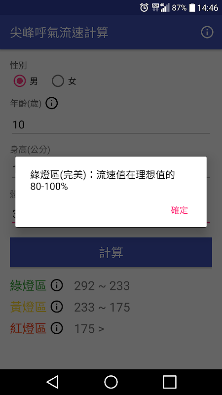 Główna dzieci astma, szczyt przepływu wydechowego powinna być mierzona codziennie, co sześć miesięcy, aby zwrócić się do lekarza, aby dostosować wartość, wykorzystali inny astma APP, otwarty na każdy zarejestrowany z wejściem kilka informacji, po prostu chcę prostego obliczenia, więc napisałem ten APP, w uzupełnieniu do ich użytkowania, ale również chcą pomóc innym rodzicom dzieci chorych na astmę.