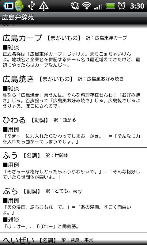 このアプリは広島弁の辞典です。ただの辞書的な情報の他に、私からのちょっとした付加情報、というか雑談も記載してますので、結構おもしろいかと思います。
