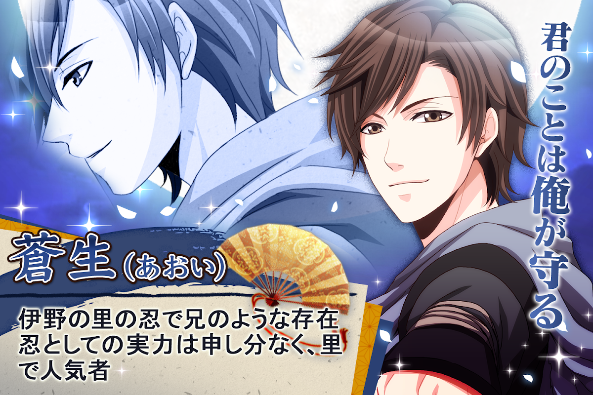 忍を舞台に、甘い誘惑に揺れる禁断と秘密の恋背負った宿命とイケメンとの恋の行方は…毎日5話分ストーリー無料無課金で読める女性向け恋愛ゲーム 乙ゲー 女子ゲー
