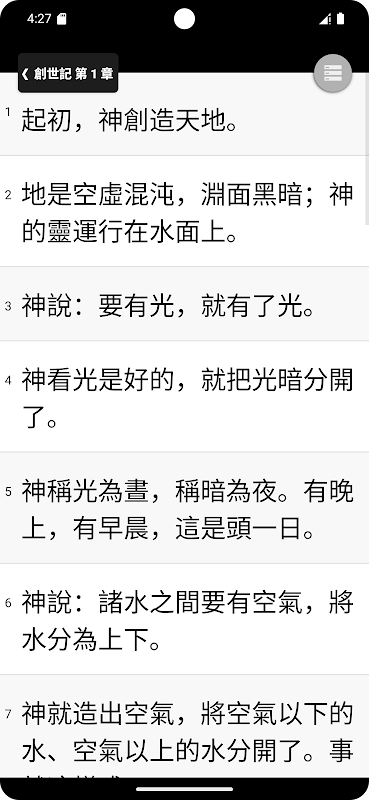 5. Będąc na stronie Pisma Świętego, przeciągnij klawisz funkcyjny w prawym górnym rogu w dół, aby aktywować funkcję automatycznego czytania. Dostępna jest również funkcja w górę!
