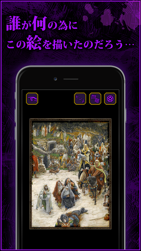 問題文をお読み頂き、絵画に秘められた意味がわかると恐い箇所をタップで選択し、「回答」ボタンを選択してください。