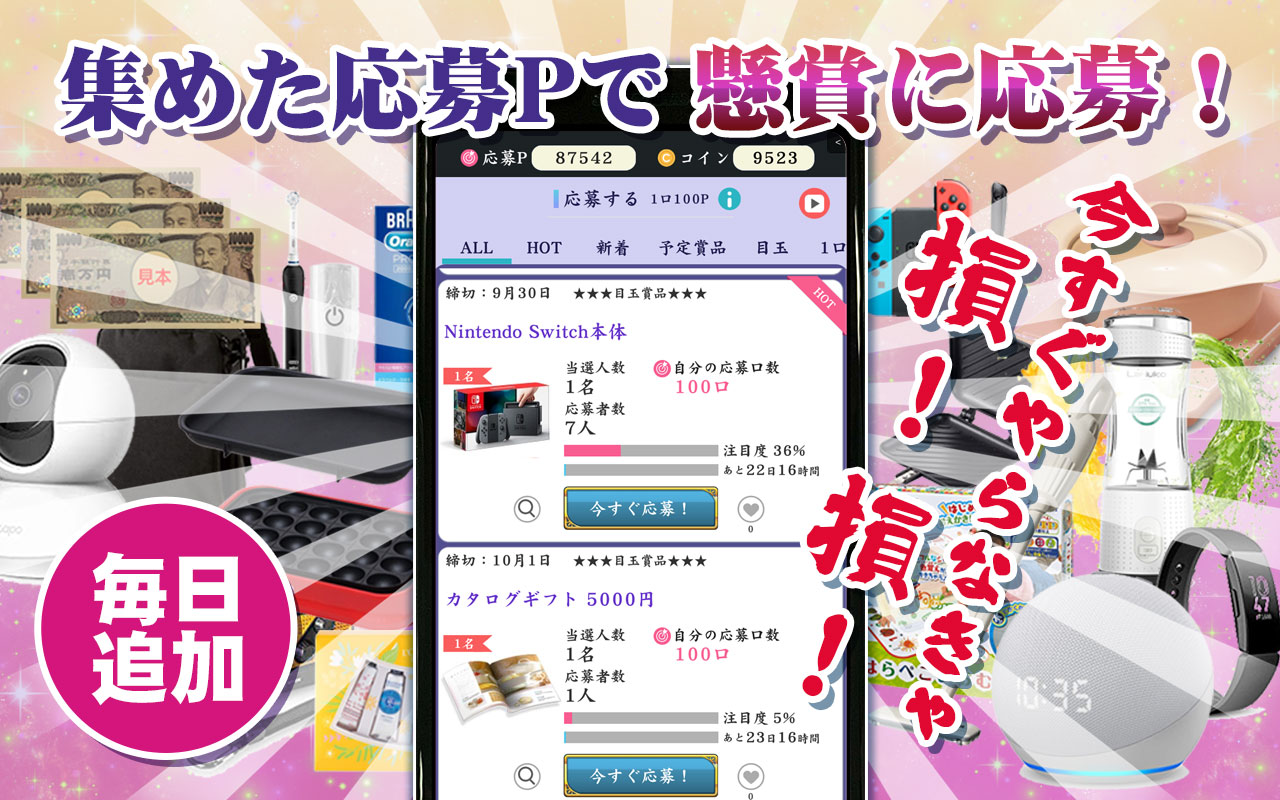 ・ Możesz łatwo zgłosić się do loterii, korzystając z zebranych punktów! Wystarczy dotknąć!
