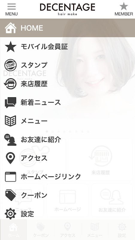 当店のアプリでは季節の流行をご案内するニュース配信や期間限定の割引クーポンなど、初めてご来店のお客さまにとってもお得な情報が満載です!!