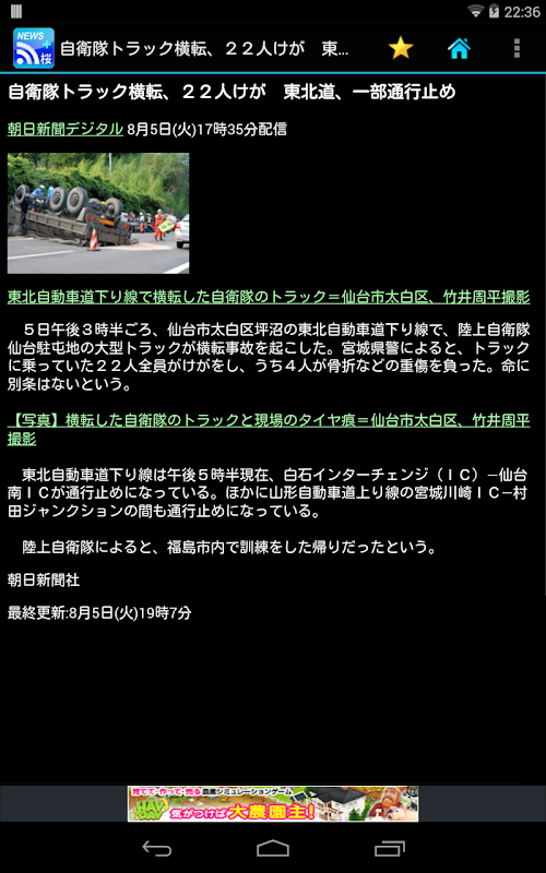 日本語ニュースブラウザ、ニュース閲覧アプリ (但し、Android V3.0端末以上に対応)