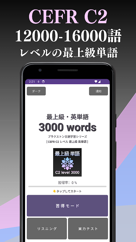 * Jest to całkowicie angielska aplikacja słów dla zaawansowanych użytkowników języka angielskiego. Poziom CEFR C2, IELTS8.0~9.0, TOFEL iBT 112~120, United Nations Eiken Special Class A, Cambridge Eiken CPE.Polecane dla tych, którzy chcą płynnie czytać angielskie gazety, oraz dla zaawansowanych uczących się języka angielskiego, którzy chcą nadrobić zaległości rodzimi użytkownicy języka angielskiego.