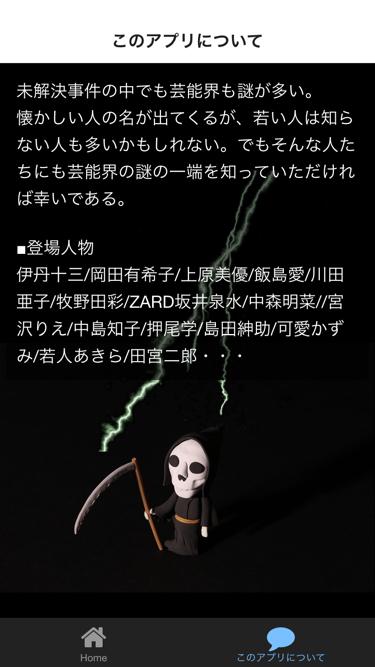 過去に遡る芸能界の未解決事件の謎を問題別にクイズ形式としました。電車に乗った時、待ち合わせのヒマな時間に、ちょい読みし、ネタに使ってください。