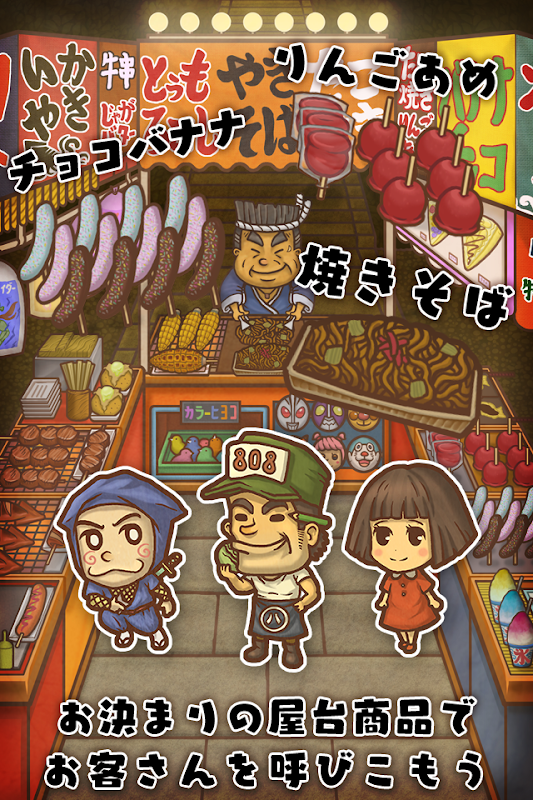 お祭り屋台にお客さんを呼び込み、屋台を繁盛させましょう!