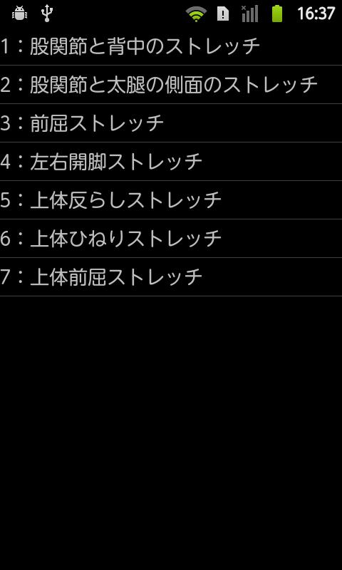 現在、7つの柔軟体操ストレッチがあり、それぞれ数分という短時間で終わるようになっています。やり方も図解されているのでわかりやすいと思います。