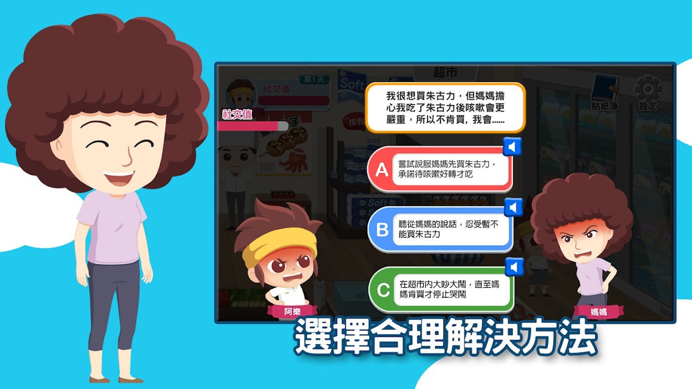 Leyulu ma nadzieję, że dzięki zabawom sytuacyjnym dzieci w wieku szkolnym mogą doświadczać pięciu codziennych sytuacji towarzyskich (klasa, autobus, dom przyjaciela, restauracja i supermarket) i doświadczać trudności, które mogą się pojawić, takie jak uczucie dyskomfortu podczas jazdy samochodem, udzielanie porad podczas zabawy z rówieśnikami. Niezgodność, niezadowolenie z ustawienia grup nauczyciela itp. Gra jest połączona z ekspresyjną grą głosową i animacją, co pozwala uczniom nauczyć się interpretować emocje innych ludzi, a także rozumieć etapy i umiejętności rozwiązywania problemów społecznych, aby poprawić społeczne zdolności poznawcze uczniów i nawiązać pozytywne relacje interpersonalne relacje.