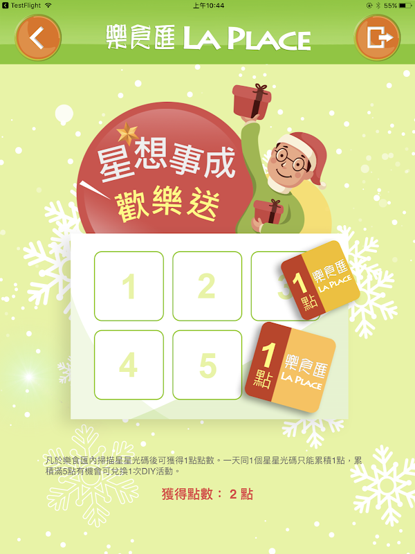 【掃光碼贈好康】:凡於樂食匯現場掃描數位看板中各店家宣傳影片或各店家前的光碼燈板,即可獲得店家聖誕套餐優惠券