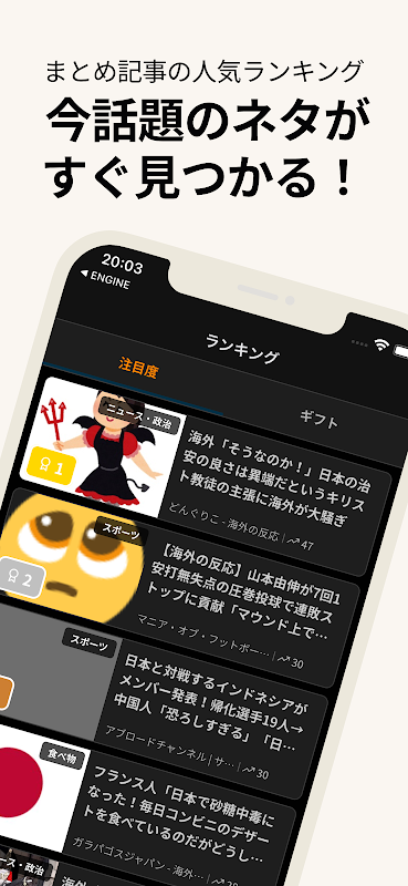 Od anime, gier i jedzenia, po poważną politykę i ekonomię. Ta darmowa aplikacja gromadzi najgorętsze tematy z Japonii w mediach społecznościowych i za granicą, dostarczając je codziennie na Twój smartfon.