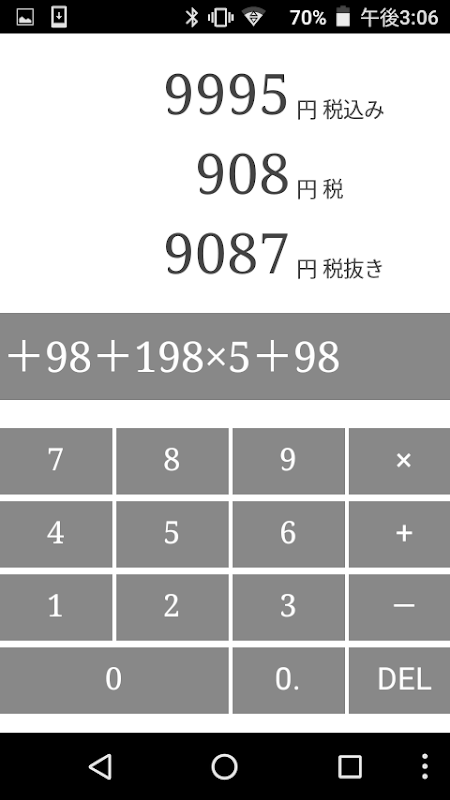 イコールボタンなしで、自動的に消費税込みの金額が表示されます。