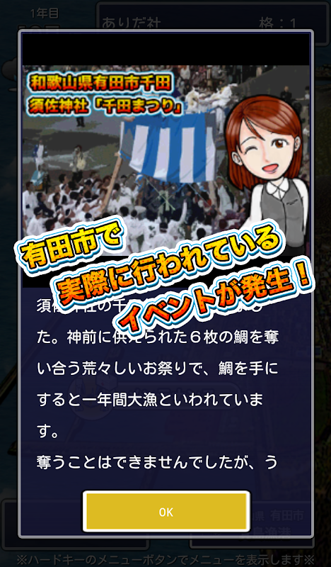 和歌山県 有田市役所公式のみかん農場経営ゲーム「Andrid AR-ARIDA」に続く、人気育成ゲームアプリ第二弾!