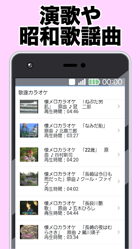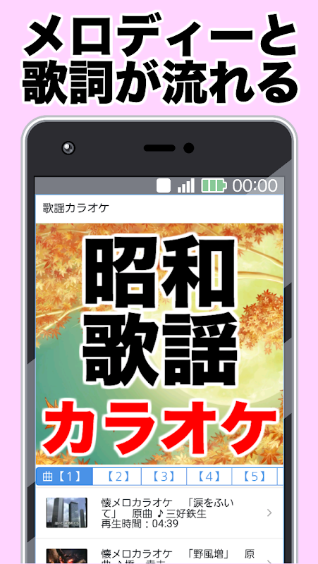【無料】昭和の演歌や歌謡曲のカラオケアプリです。好きな音楽を聞くことにより健康管理や脳トレや認知症予防、鬱予防の効果が期待できます。