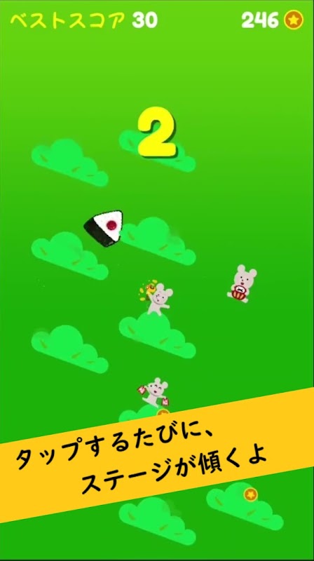 2.コインをたくさん集めながら、おむすびを、より下までうまく運びましょう。