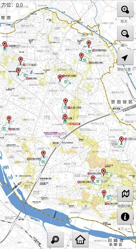 Jest to aplikacja do oglądania na smartfony mapy wskazujące położenie takich schronisk i katastrof miejsca spotkań Komae miasta.