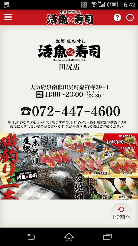 生簀回転すし活魚寿司 田尻店(泉南郡田尻町)のお持ち帰り寿司専用注文アプリです。 面倒な会員登録は不要!アプリで予約、スムーズにお持ち帰り!