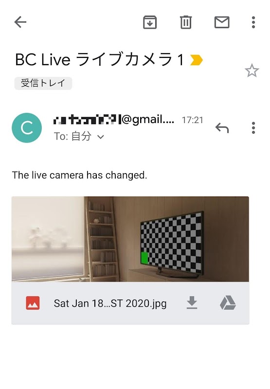 カメラ画像に変化があった時だけ画像を添付してメールで通知します。