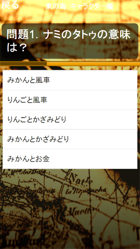 ワンピース(ONE PIECE)の原作、映画やアニメなどから知識に関するクイズ問題を出題するゲームとキャラクター相性診断が出来る非公式・非公認アプリです。