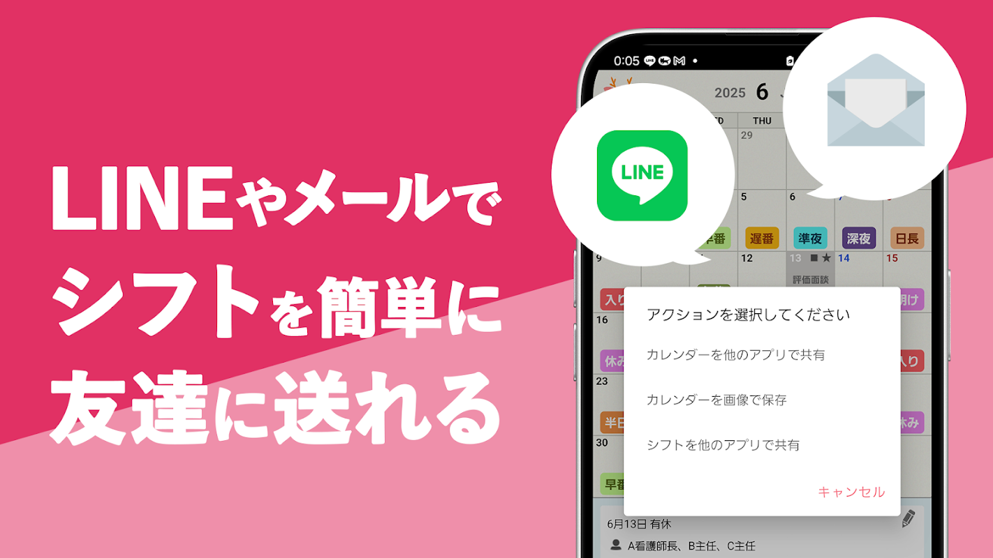 Natychmiast udostępnij swój harmonogram rodzinie i partnerom, wysyłając kalendarz przez LINE lub e-mail.