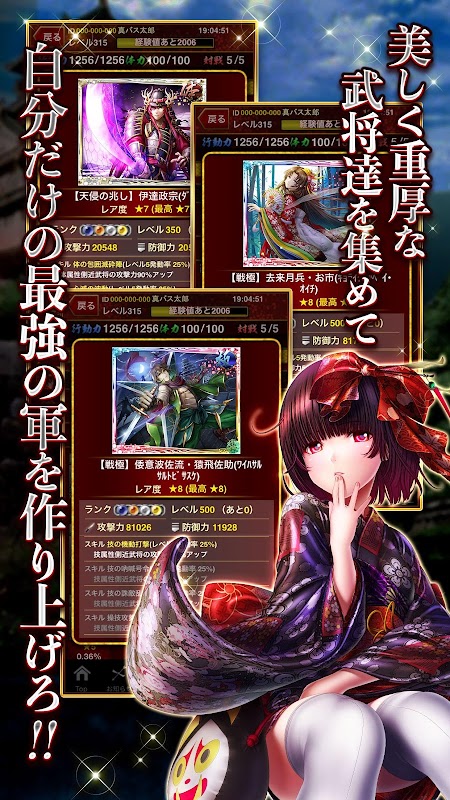 シリーズ累計400万人以上が激戦を繰り広げた、ドラマチック戦国RPG!伊達政宗、織田信長、武田信玄などの有名武将を育成して戦国最強を目指そう!