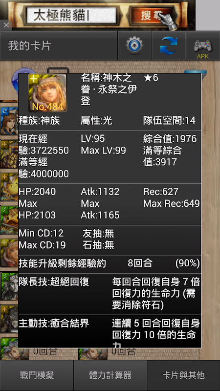 * 隊伍能力之試算, 包含隊長攻擊、回復、生命加成計算