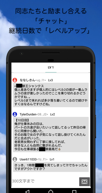 Jest to aplikacja wspierająca abstynencję dla mężczyzn, która nie tylko utrzymuje abstynencję, ale także uczy się o prawidłowych hormonach, jednocześnie zwiększając liczbę dni abstynencji poprzez czat i rankingi z innymi użytkownikami.