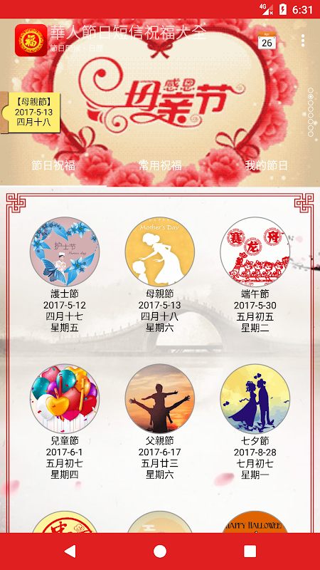 節日祝福 - 節日短信 萬年曆 1.5.4