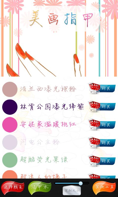 操作方法:照取手部特写 - 选择不同的颜色 - 为指甲涂上颜色 - 购买喜欢的甲油