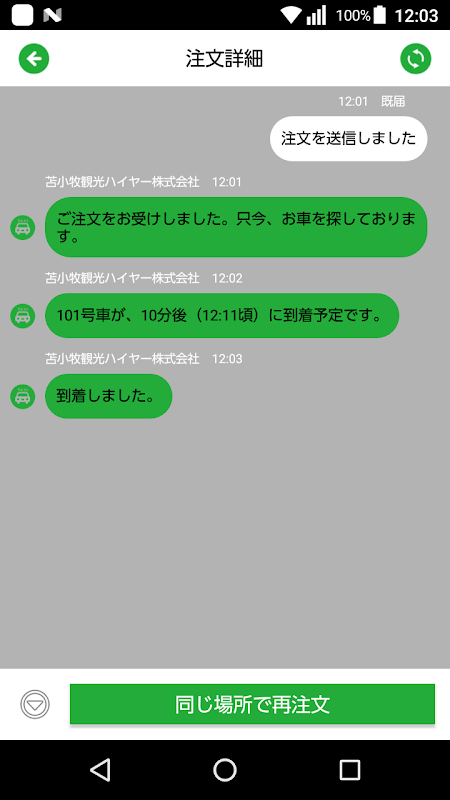 6、注文確定後はプッシュ通知にて、”到着予定時間・お車到着”のご連絡