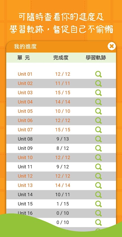 . W każdej chwili możesz sprawdzić swoje postępy i ścieżkę nauki, a także zachęcać się, aby nie być leniwym.