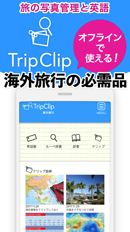 Tłumaczenie na angielski i słownik (japoński ⇒ angielski), istnieje funkcja zarządzania fotografią podróży.
