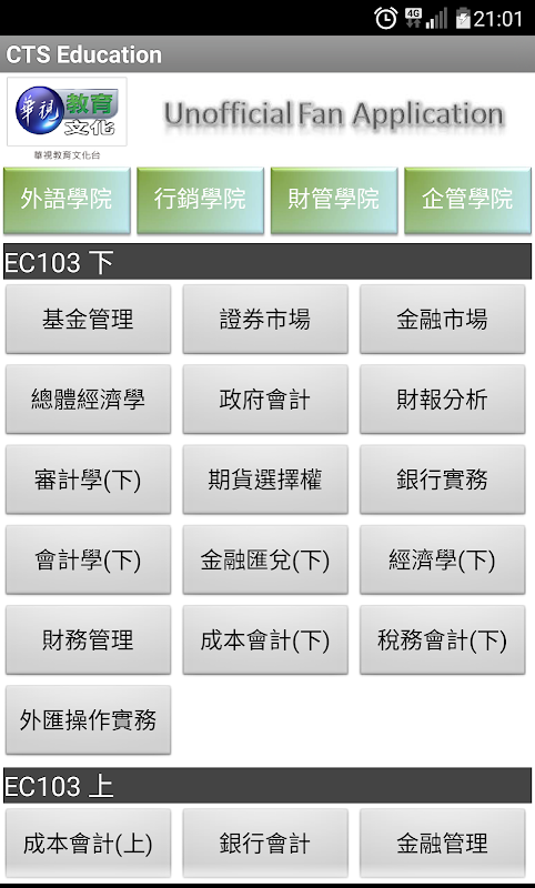 一個喜歡華視教育台的人,將華視教育頻道免費資源整合的應用程式。內容初分為外語學院、行銷學院、財管學院、企管學院。