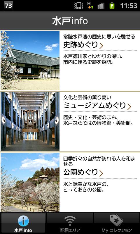 ※「水戸info」及び「配信エリア」のタブを押すことで、それぞれのページのトップ画面に戻ることができます。