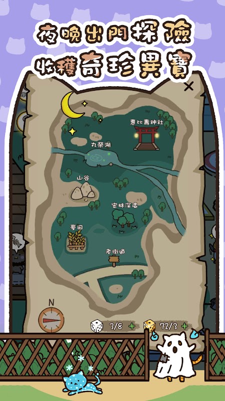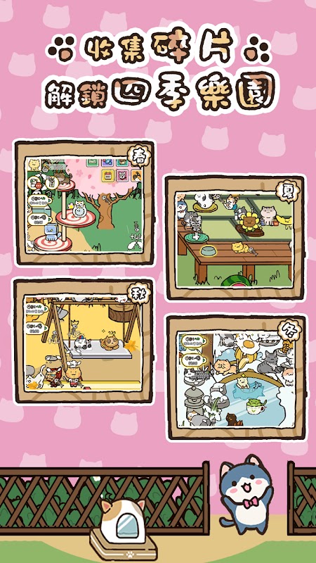 ☺ Zbierz fragmenty czterech pór roku, aby odblokować różne dziedzińce dla kotów;
