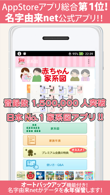 Oficjalna aplikacja sieciowa AppStore nr 1 (bezpłatna) Największa w Japonii aplikacja do tworzenia drzewa genealogicznego z ponad 1,5 milionami zarejestrowanych użytkowników! Obsługiwany przez jedyną firmę w branży genealogicznej, która uzyskała znak prywatności