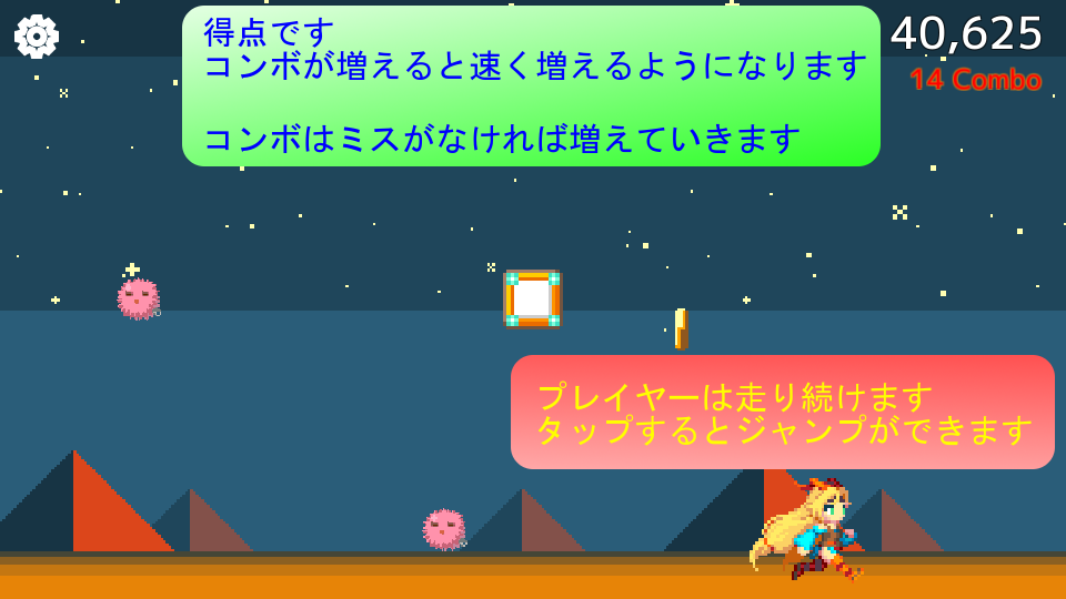 画面左端にユニティちゃんに来てしまうとゲームオーバーです。