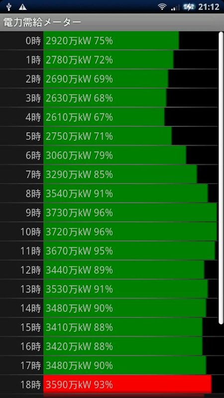 計画停電が実施されている東京電力地域の電力需給状況を表示するウィジェットとグラフを表示するアプリです。