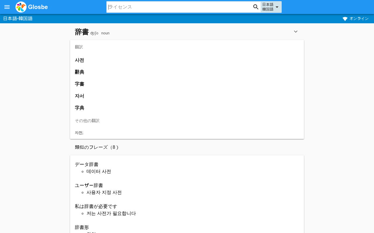 Glosbe - マルチメディア辞書韓国語-日本語、日本語-韓国語