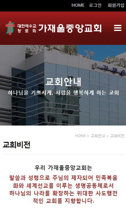 또한 교회 홈페이지 게시판에 올라온 최신 소식 등을 스마트폰에서 빠르게 확인하실 수 있습니다.