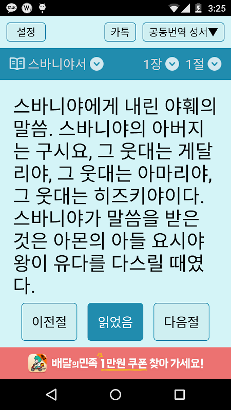 ●(5) 좋은 구절이 있으면, 그 구절을 카카오톡에 바로 올리는 기능이 있습니다. 주위 분들과 좋은 말씀을 나눠보세요.