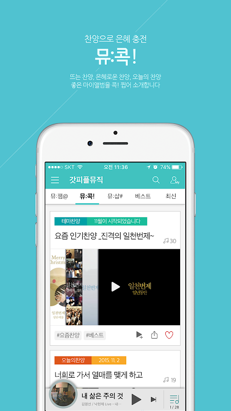 찬양을 들을 수 있는 큐레이션이 강한 뮤직 어플입니다.