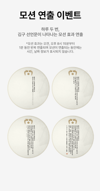 O godzinie 8:15 i 20:15 pojawi się efekt ruchu przedstawiający Deklarację Kim Gu.