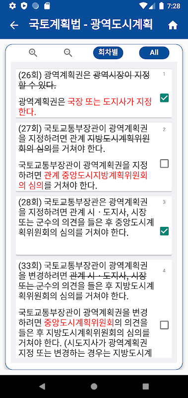 Możesz tylko sprawdzić, czy naprawdę zapamiętałeś to poprawnie lub czy wydaje ci się, że zapamiętałeś to tylko rozwiązując problem. Prawidłowy tekst jest napisany tak, jak jest w tekście oryginalnym, a niewłaściwy tekst jest oznaczony ze wskazaniem, gdzie i jak się mylił, dlatego ważne jest, aby zrozumieć i zapamiętać koncepcję, gdzie skupić się na nauce i jakie pułapki egzaminator powinien umieścić przygotowując pytania.Na pierwszy rzut oka widać, czy sprzedajesz. Możesz również sprawdzić status punktacji według tematu, dzięki czemu możesz sprawdzić, ile zapamiętałeś, możesz sprawdzić fragmenty, których zapamiętałeś mniej, i fragmenty, na których musisz się skupić, a dostępna jest funkcja zbierania i rozwiązywania tylko sprawdzone pytania. Ucz się iteracyjnie, aż