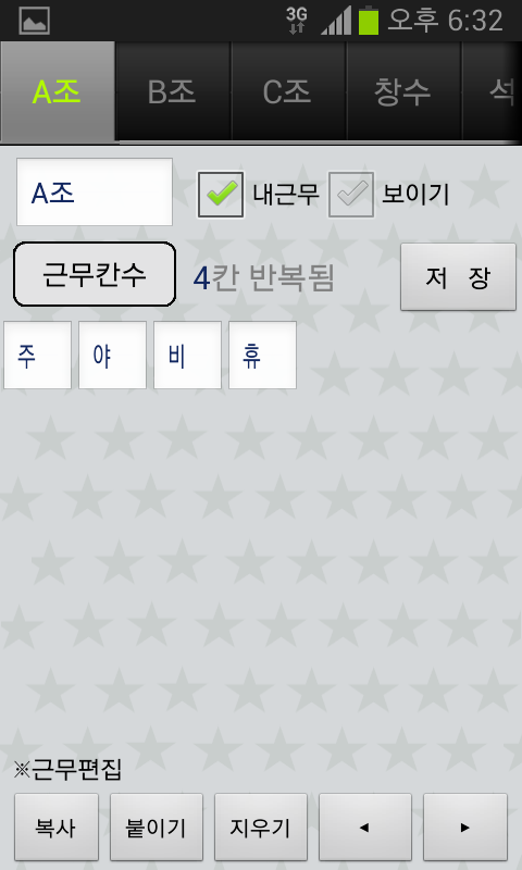 Aplikacja do zarządzania przejście dla pracowników zmianowych. Widzisz faceta pracującego dla maksymalnie 12 osób (zespołu) na pierwszy rzut oka.