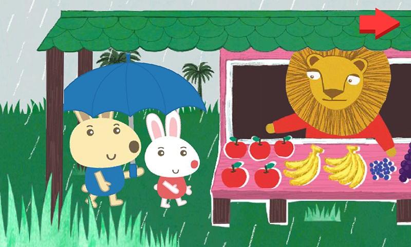 과일가게에 과일을 사러 간 토끼남매 토미와 라비.