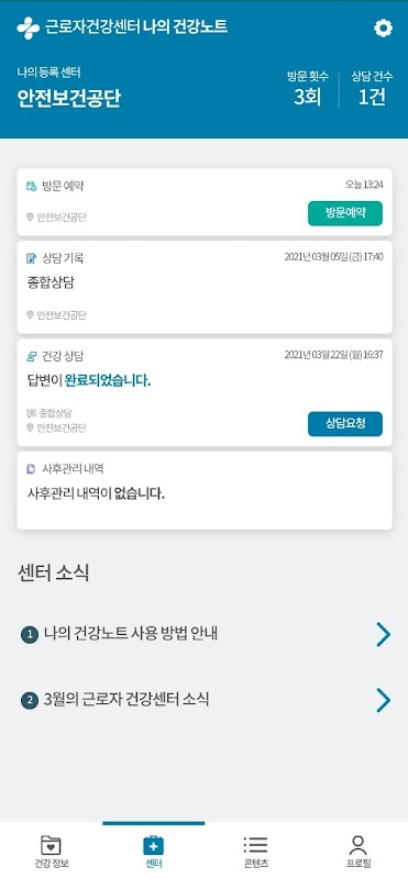 근로자건강센터 나의 건강노트 1.4.01