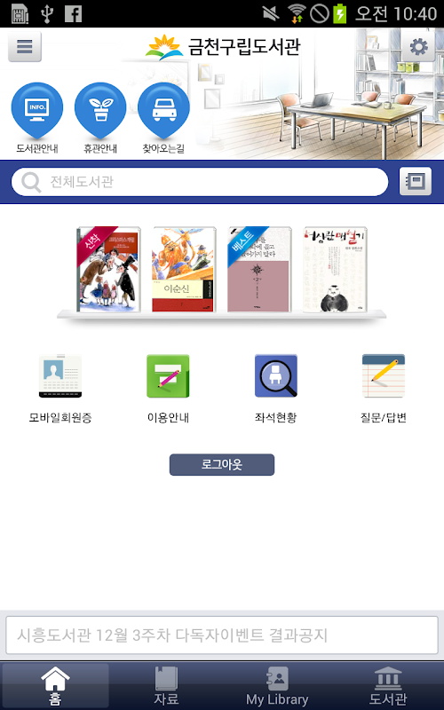 4. 도서관 공지사항 및 휴관일 등의 도서관 정보